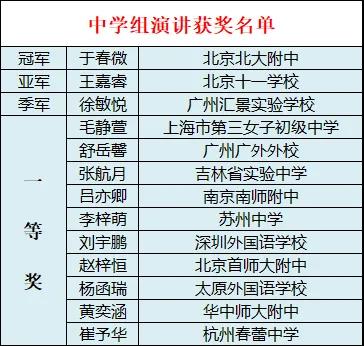| 中学组优秀辩手 |